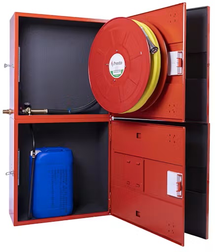 Vi tilbyder et bredt udvalg af brandskabe. Hvilken type brandskab du skal vælge, afhænger af området, der skal dækkes. Brandskabe med slangetromler er direkte forbundet med bygningens vandforsyning, hvilket betyder, at de aldrig løber tør for vand, som det kan ske med håndslukkere. Dette gør brandskabe ideelle til at håndtere større brande.