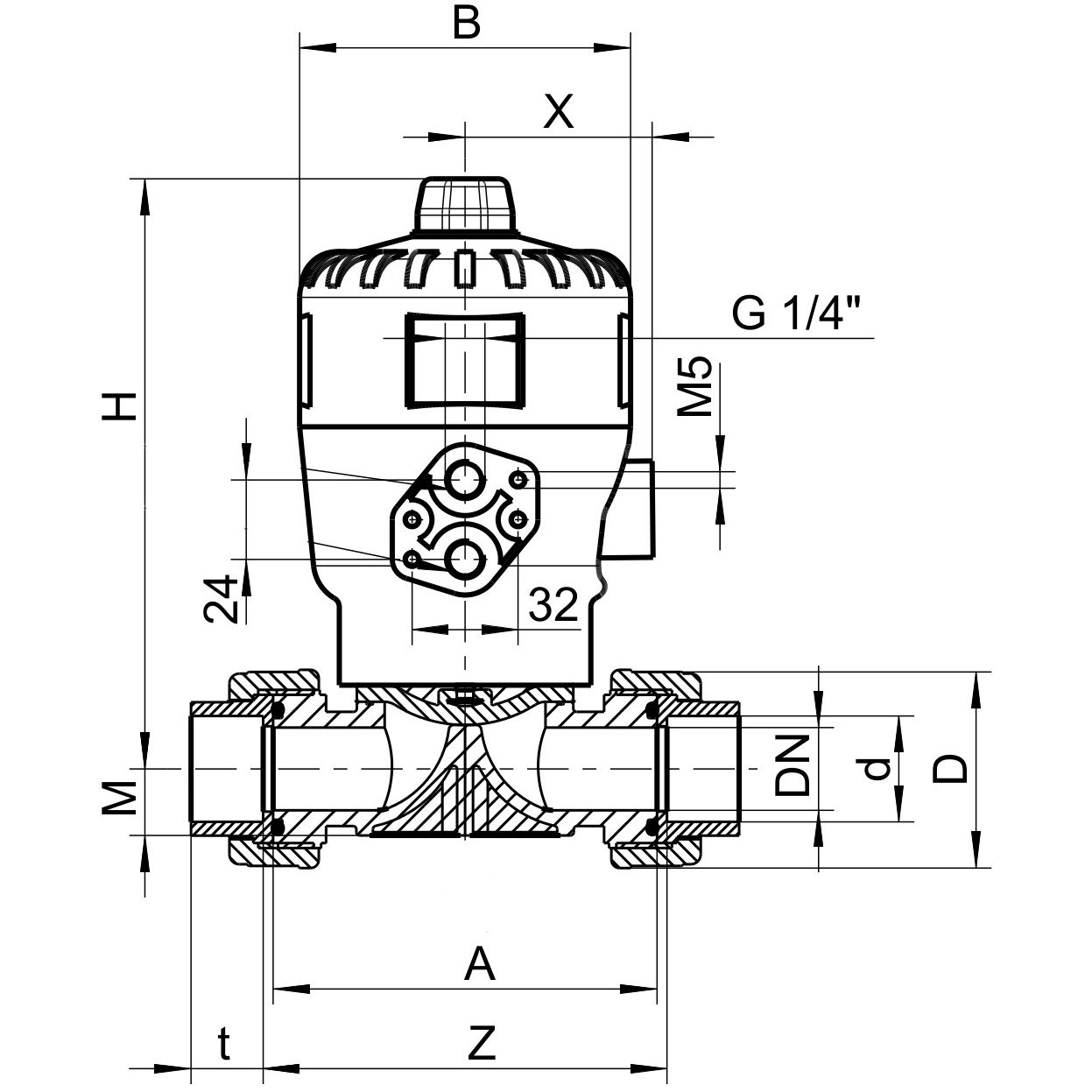 PVC-U Membranventil indvendig limning pneumatisk (NC) EPDM