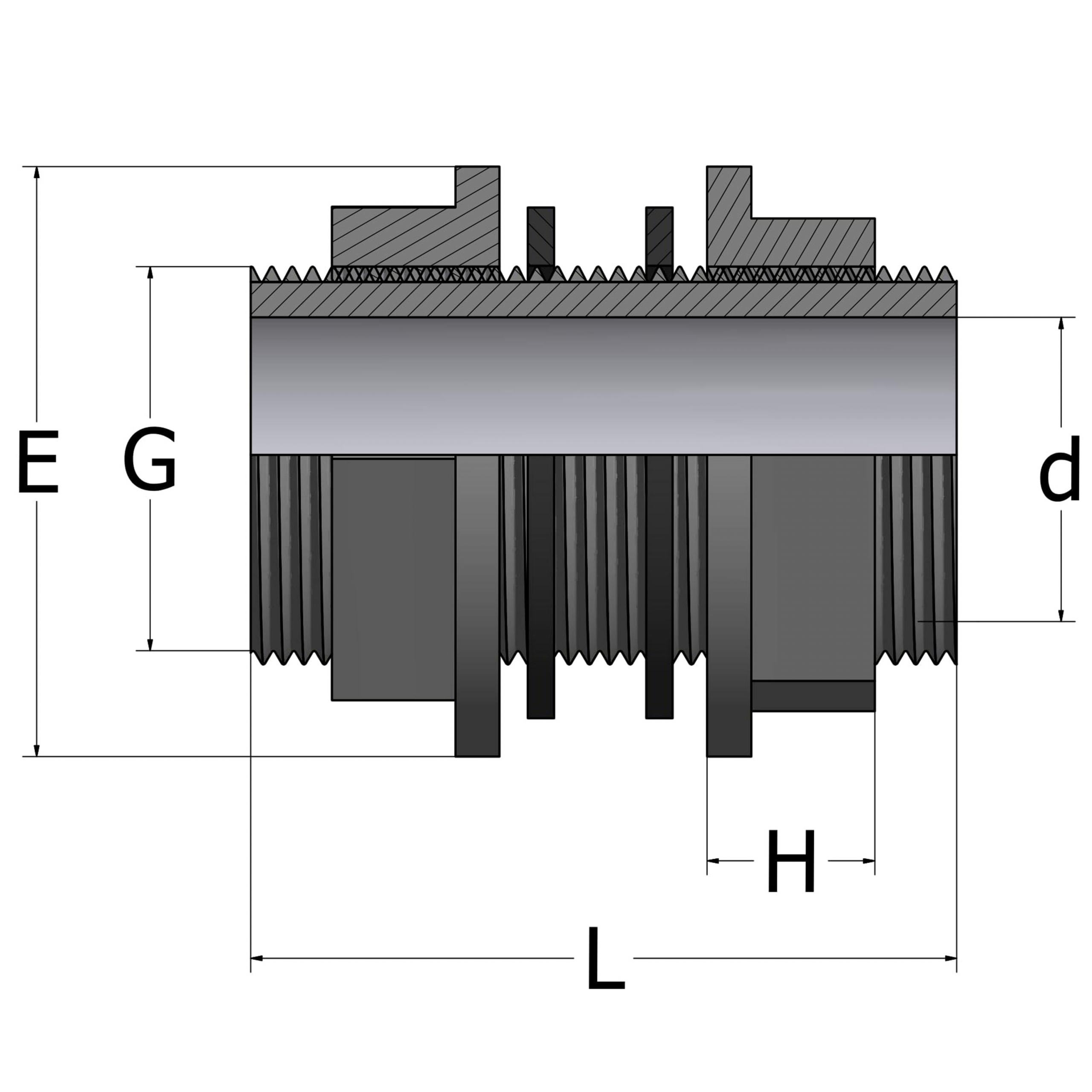 PVC-tankgennemføring med udvendig gevind