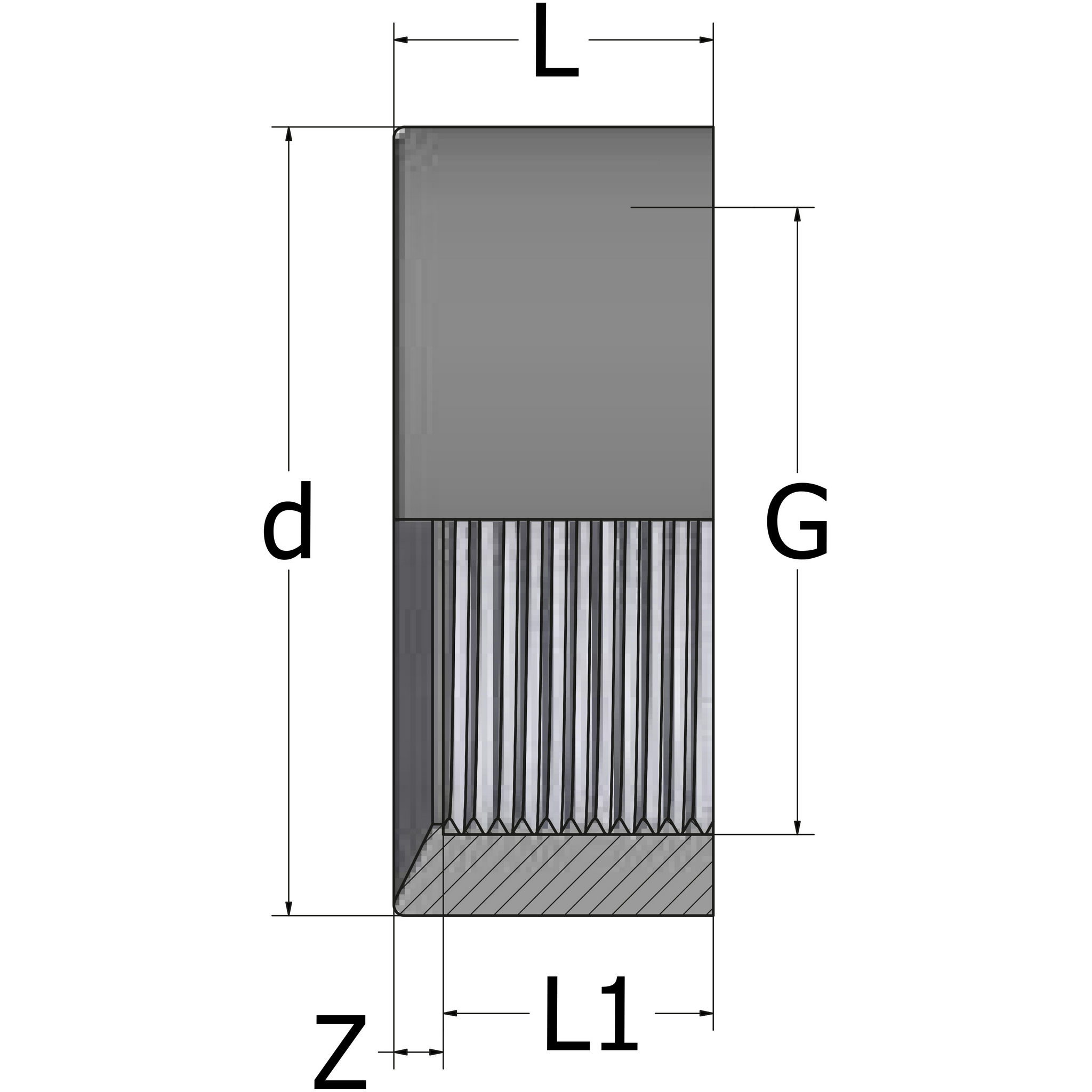 PVC-U Bøsning udvendig limning, indvendigt gevind