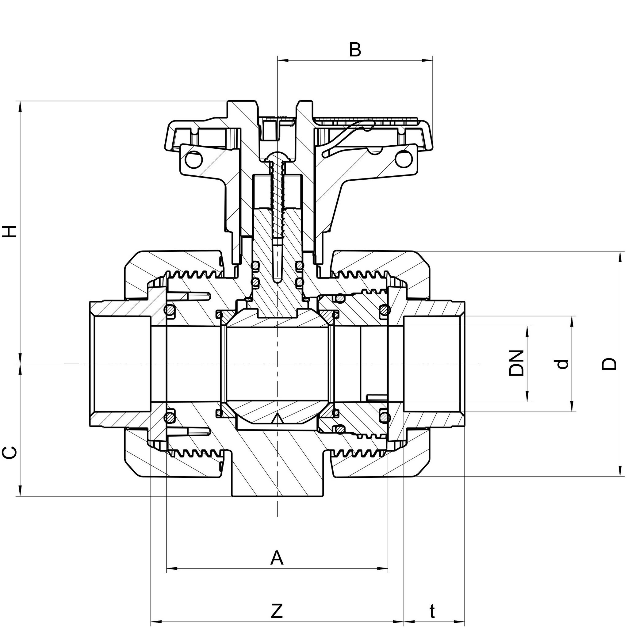 PVC-U Kugleventil – Indvendig limning DN10-100mm FPM tætning