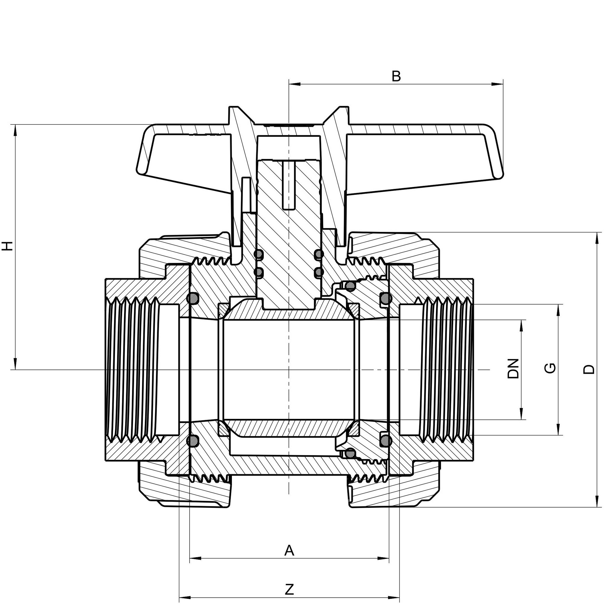 PVC-U Kugleventil indvendig gevind med PE sæder