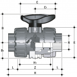PVC-U Kugleventil indvendig gevind DN10-100mm EPDM